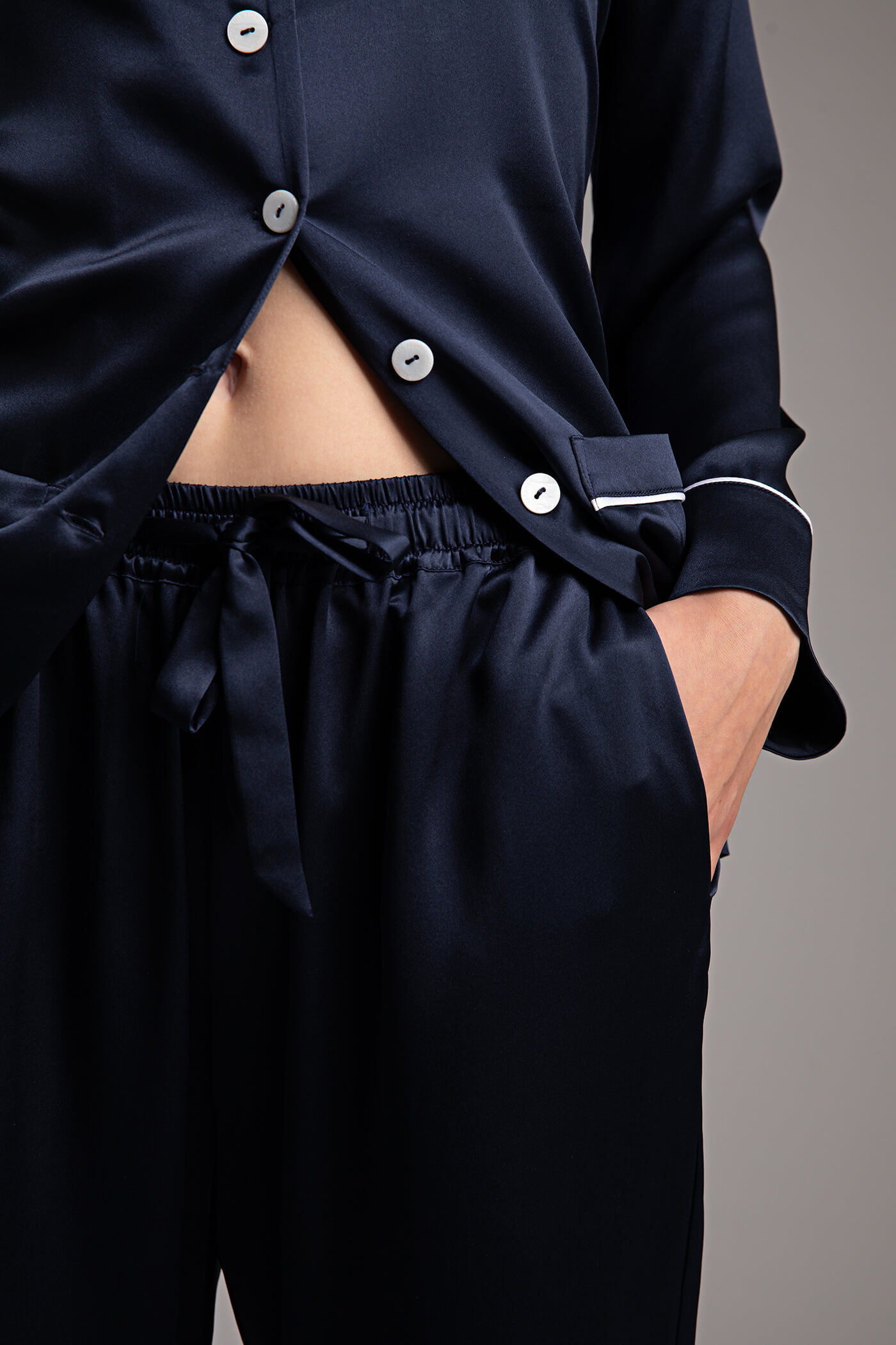 - This pyjama set is made from 100% Mulberry 22 momme silk.