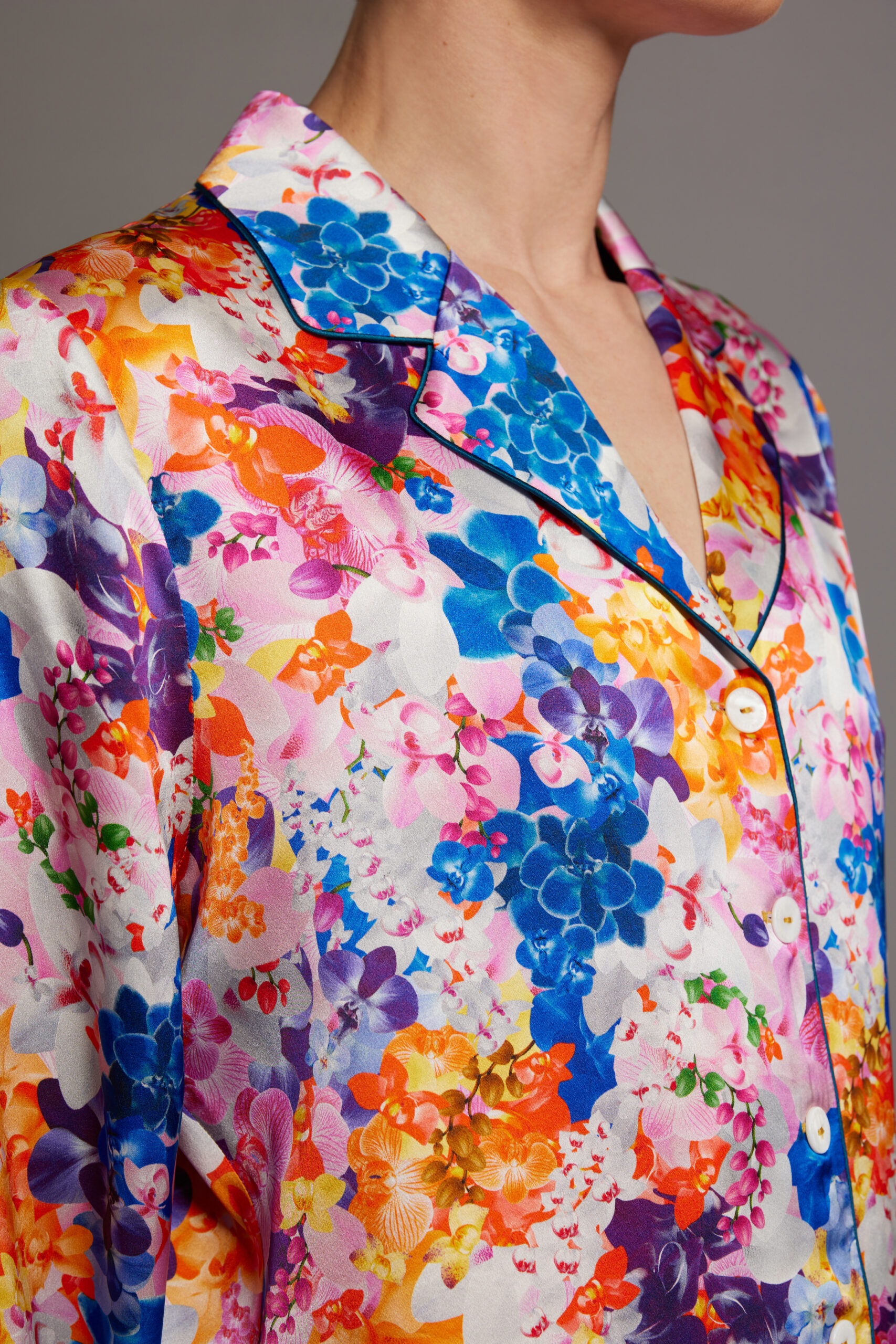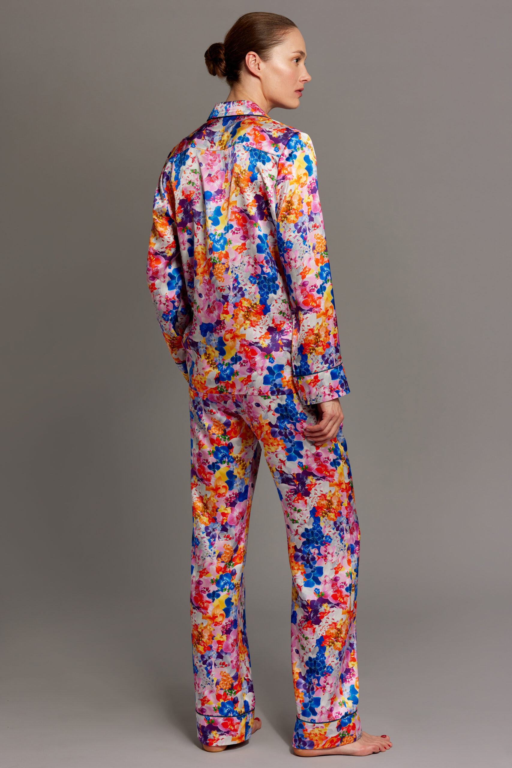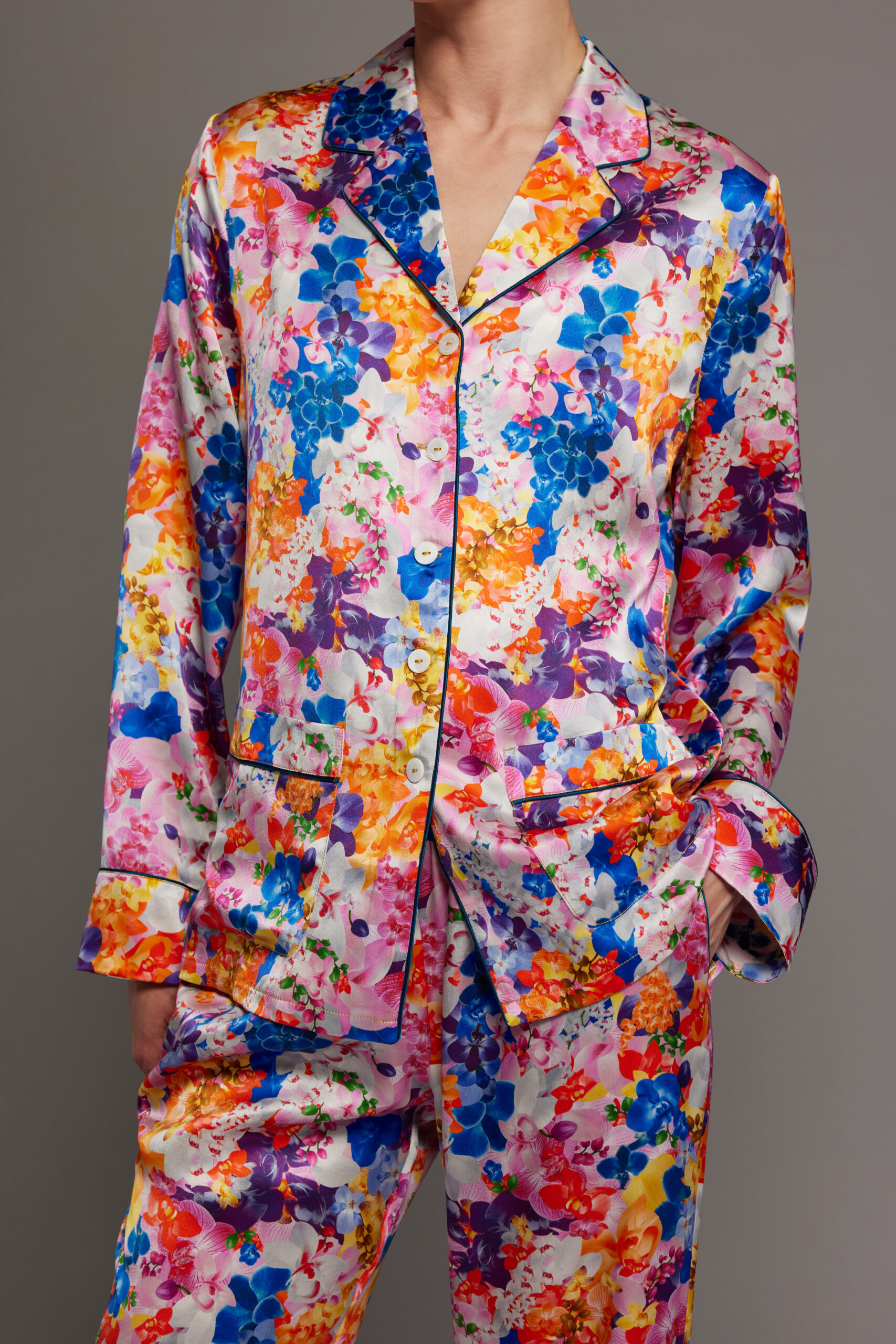 - Luxury orchid print Mulberry silk pyjama set